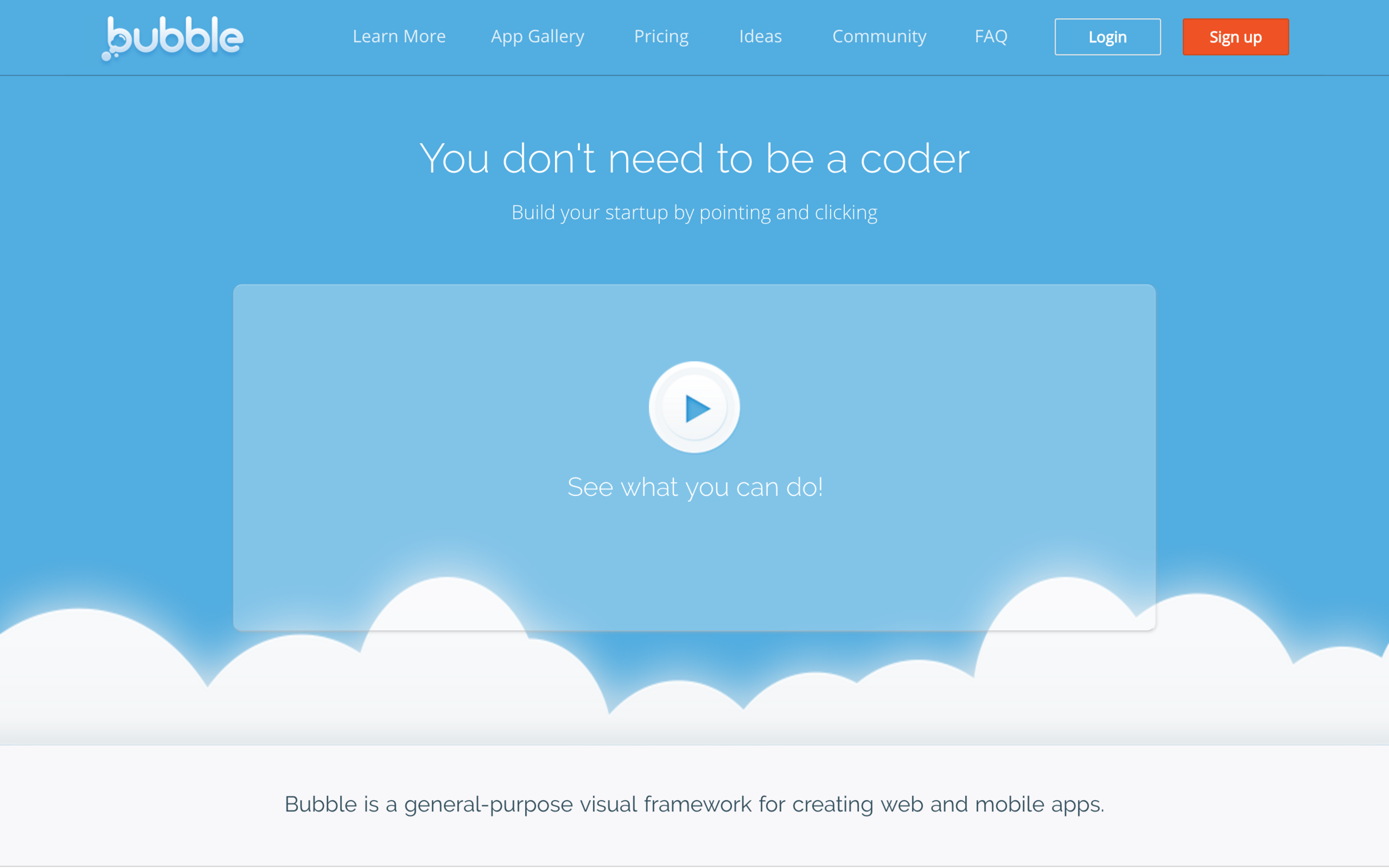 If you're looking for a little more control, Bubble is your answer. Bubble is truly revolutionary. You can build full-fledged websites with app-like functionality without writing any code. It's not expensive and if you're looking to learn even more check out a Udemy course on it.