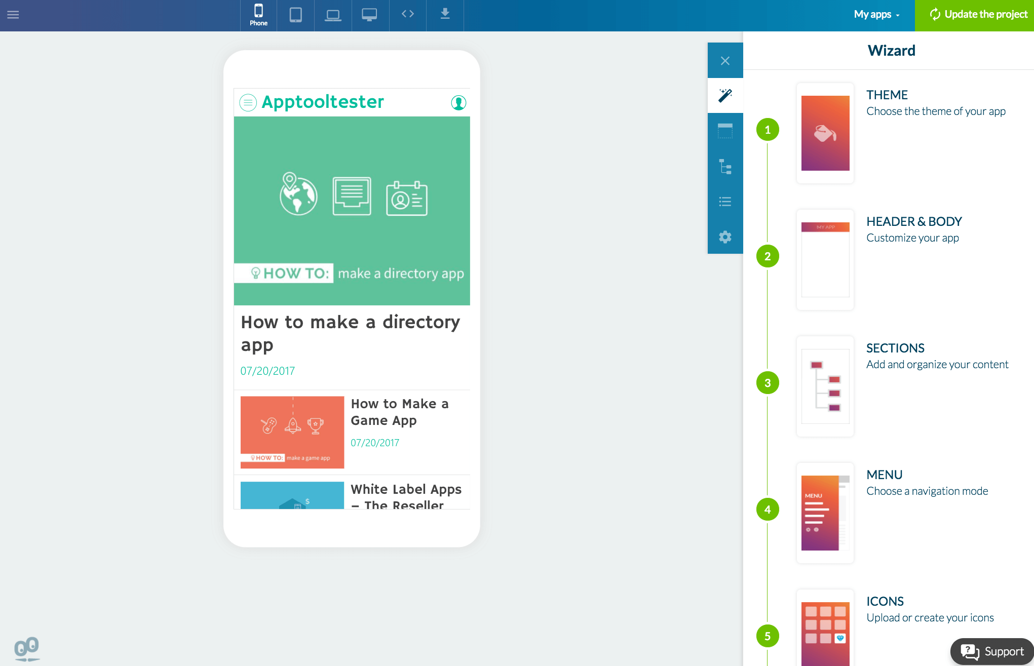 Don't let the name fool you. Good Barber is the simplest way yet to create web or mobile apps (Android/iOS). It offers a free 30 day trial which should be enough time to figure out if it offers the functionality you seek.